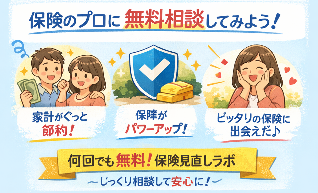 → 何回相談しても無料!【保険見直しラボで保険相談】